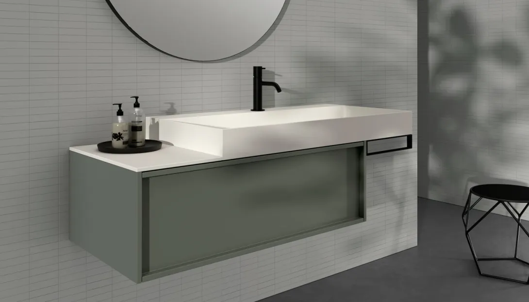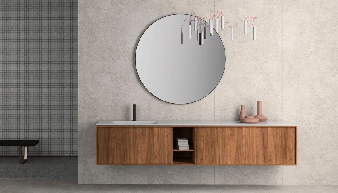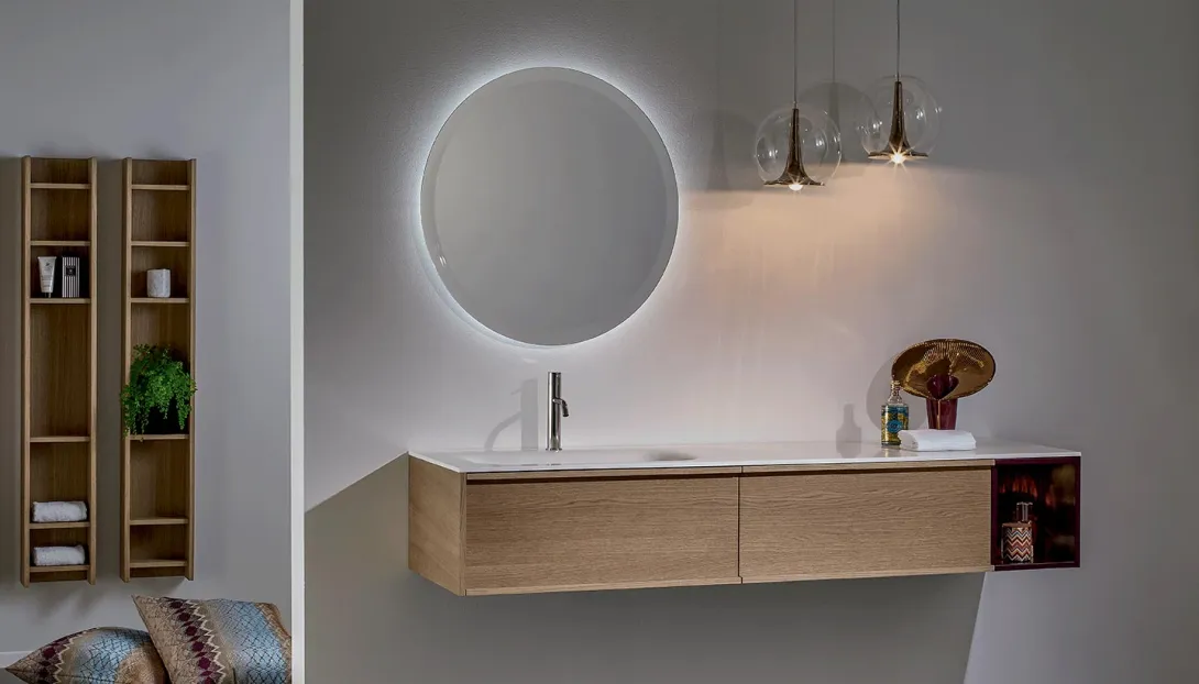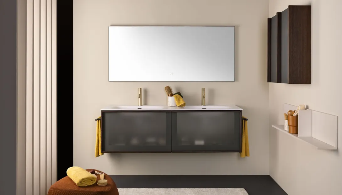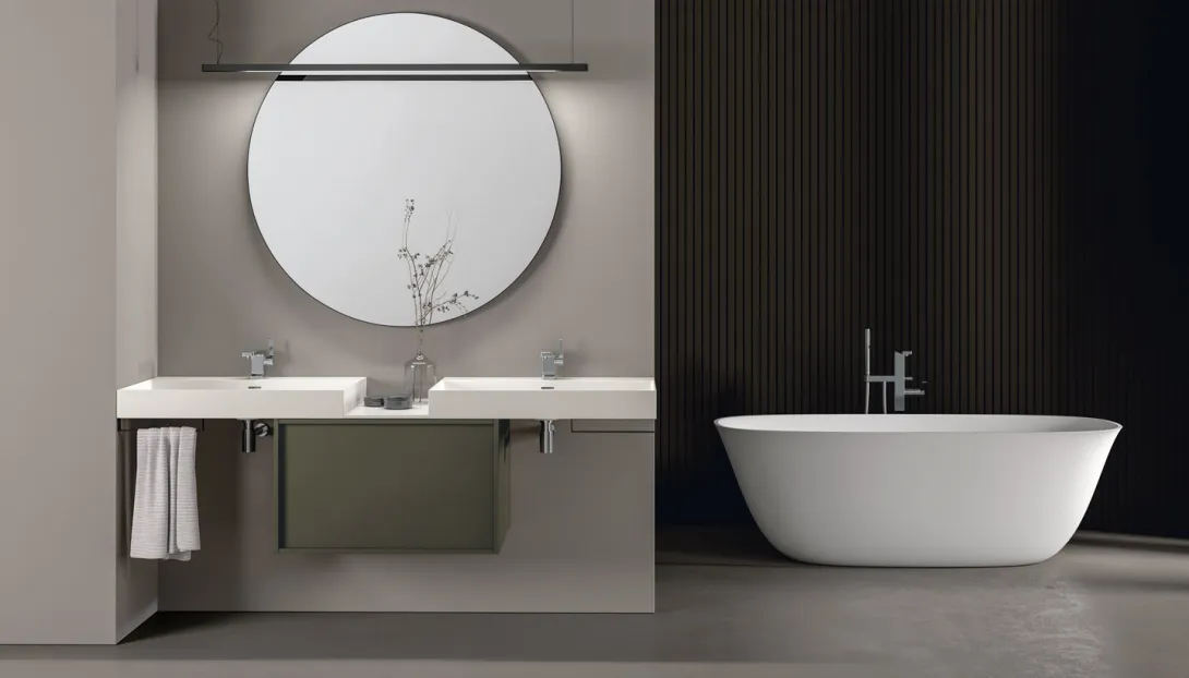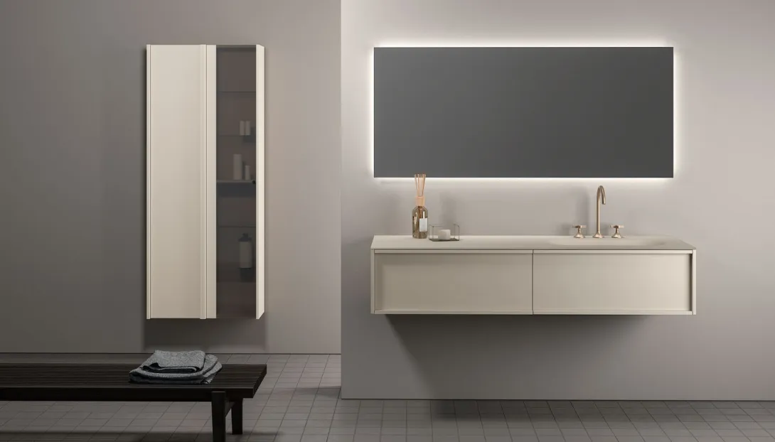 Loop ist ein System hängender Badmöbel mit elegantem, zeitlosem Design. Die Proportionen sind so entwickelt, dass sie großzügigen Stauraum bieten, bei einer Tiefe, die optimal auf moderne Wohn- und Badkonzepte abgestimmt ist.