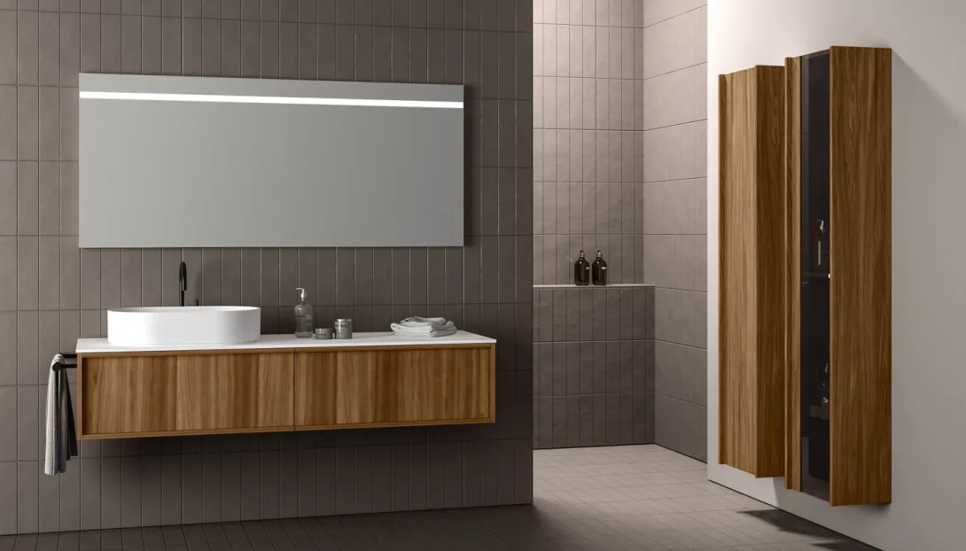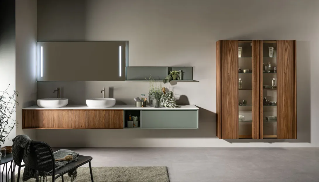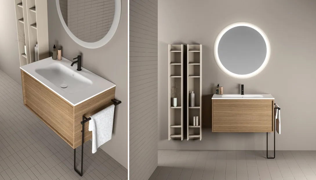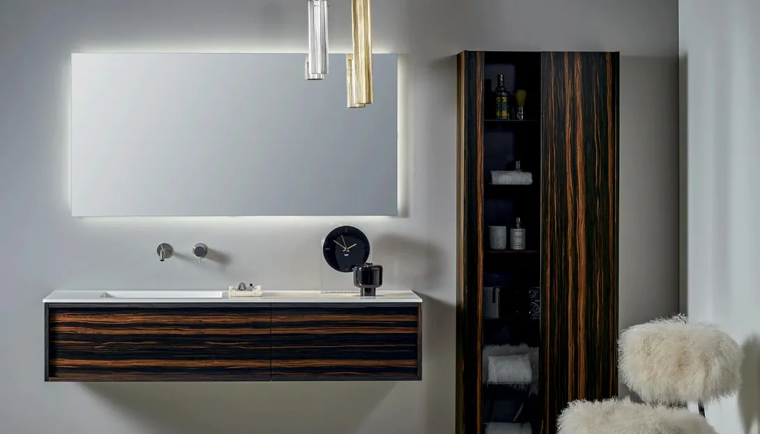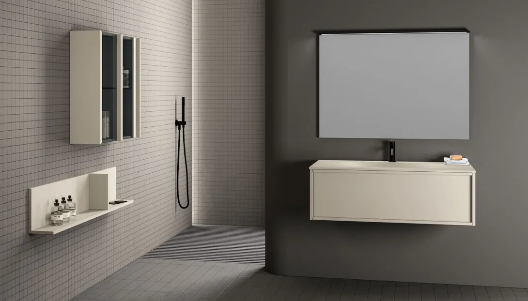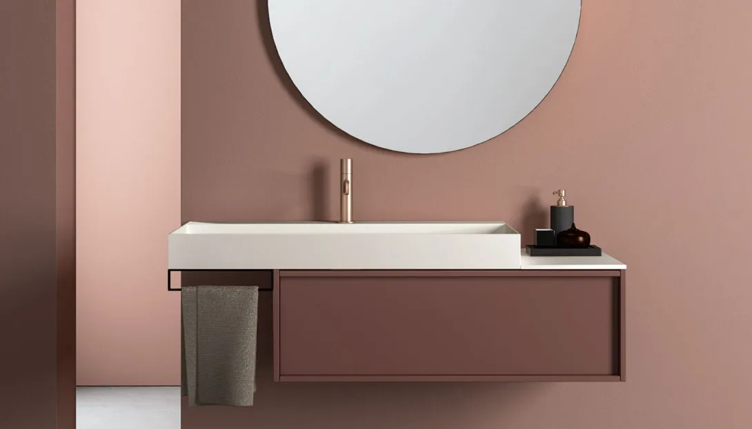 Loop ist ein System hängender Badmöbel mit elegantem, zeitlosem Design. Die Proportionen sind so entwickelt, dass sie großzügigen Stauraum bieten, bei einer Tiefe, die optimal auf moderne Wohn- und Badkonzepte abgestimmt ist.