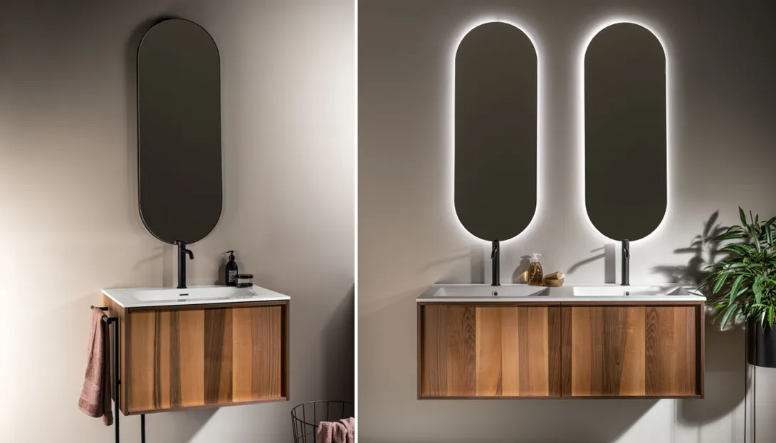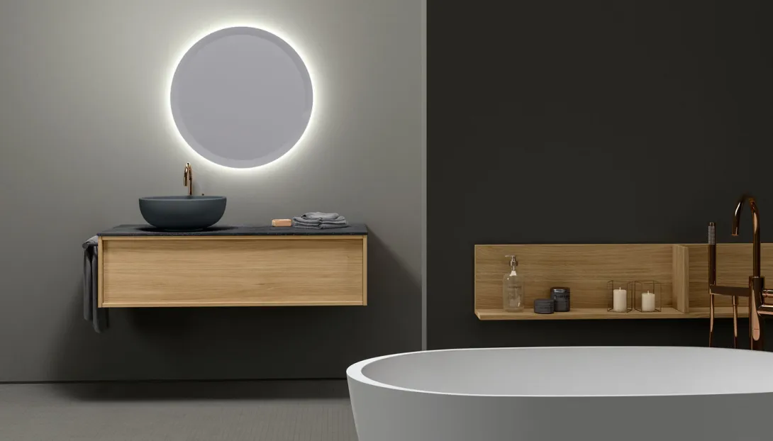Verdeckte Griffe, ergonomische Details und hochwertige, feuchtraumgeeignete Materialien verleihen Loop seine besondere Substanz.