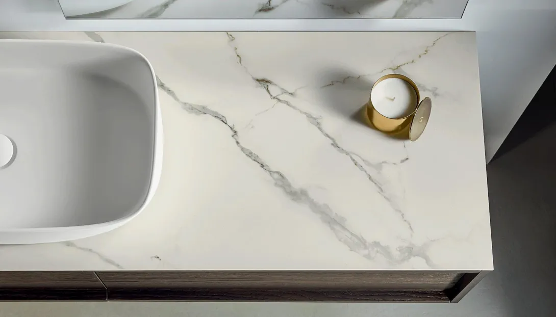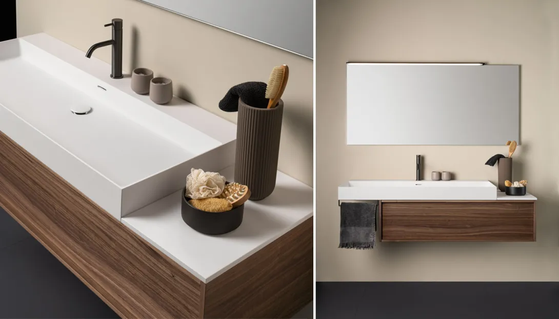 • Große Auswahl an Waschtischplatten mit integriertem oder aufgesetztem Waschbecken.