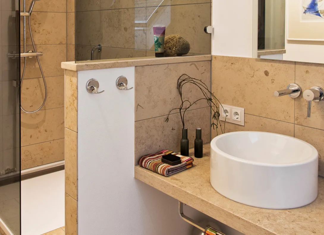Nicht nur für Boden- und Wandgestaltung ist Naturstein optimal geeignet. Ganze Waschbecken, Duschtassen oder Badewannen lassen sich mit Naturstein gestalten. Naturstein ist ein echter Alleskönner, der Ihr Badezimmer in ein optimal aufeinander abgestimmtes Konzept verwandeln kann.