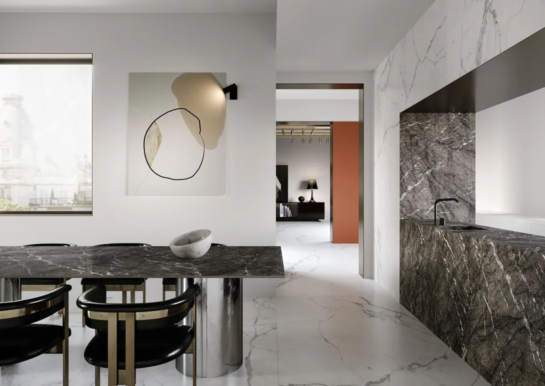 Entdecken Sie die Vielfalt beliebter Natursteine für Ihr Zuhause. Marmor steht für zeitlose Eleganz, Schiefer für markante, rustikale Strukturen und Granit für besondere Härte und Farbvielfalt. Mit Marmor, Schiefer und Granit gestalten Sie Wohnräume stilvoll, langlebig und einzigartig. Durch ihre industrielle Herstellung sind moderne, pflegeleichte Oberflächen möglich und die Gestaltungsmöglichkeiten nehmen kein Ende. Lassen Sie sich inspirieren: