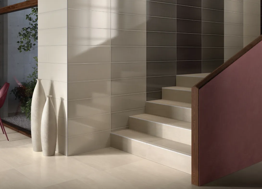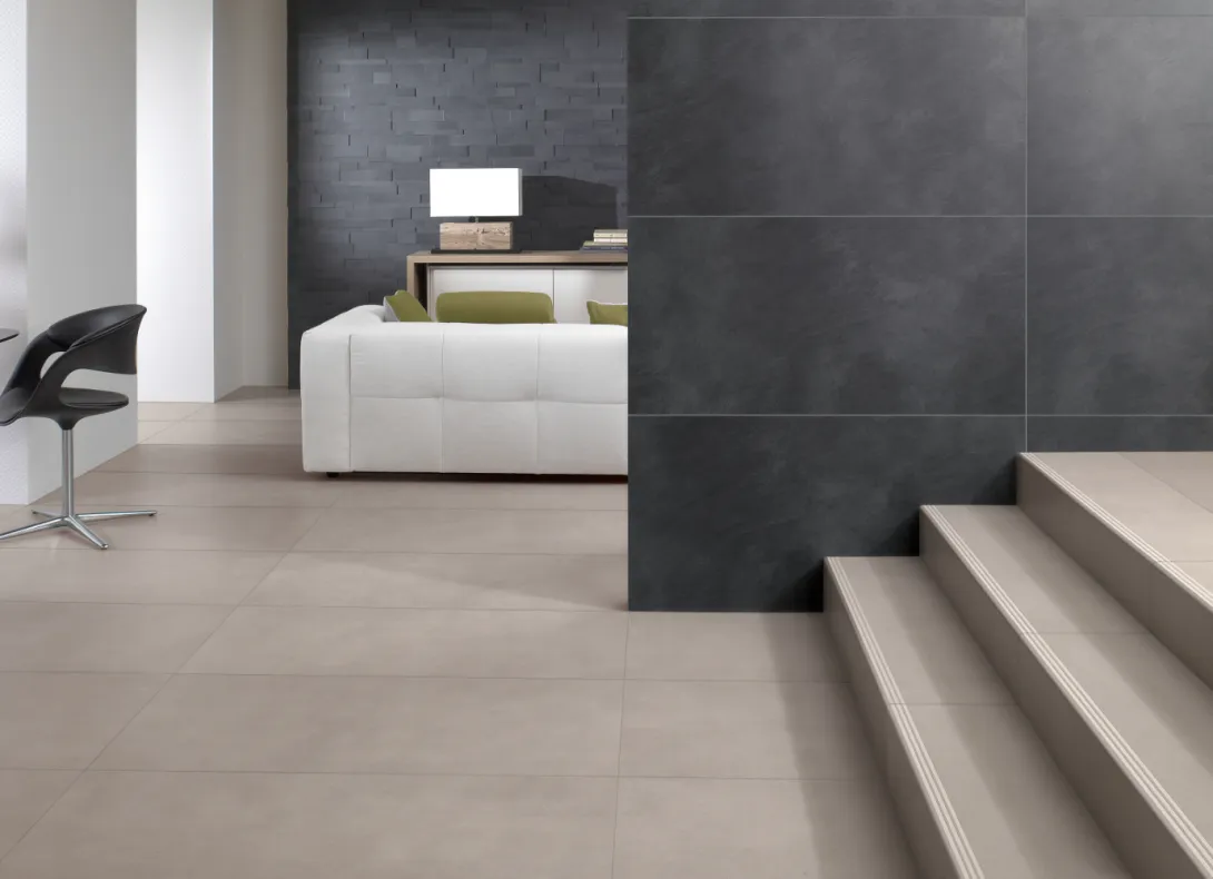 Der Anspruch an Fliesen für Treppen ist hoch: Sie müssen sicheren Halt beim Treppensteigen bieten und besonders strapazierfähig sein. Unsere Fliesen erfüllen diese Anforderungen durch innovative Design- und Materiallösungen.